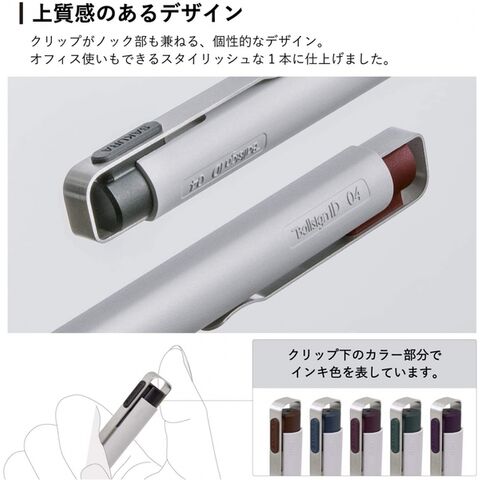 上質感のある金属グリップクリップがノック部分も兼ねる、個性的なデザイン。