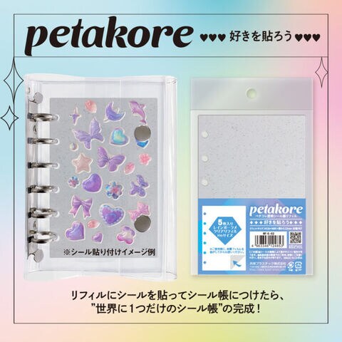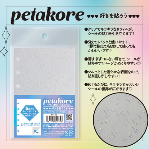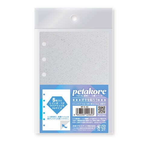 ペタコレ 透明シール帳 リフィル 02/レインボーラメ 5枚入 M6サイズ 6穴 追加用 台紙 キラキラ 共栄プラスチック