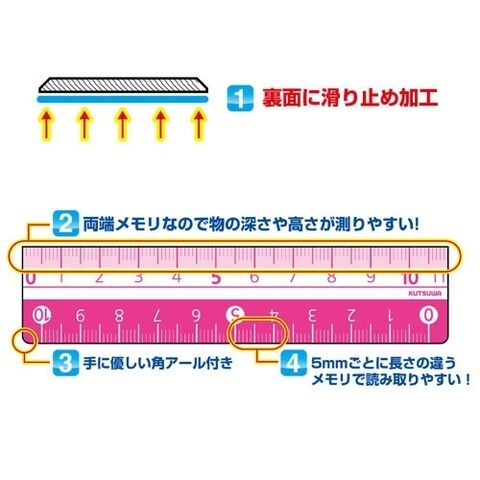 ・定規裏面に滑り止め加工を施し、線が引きやすい