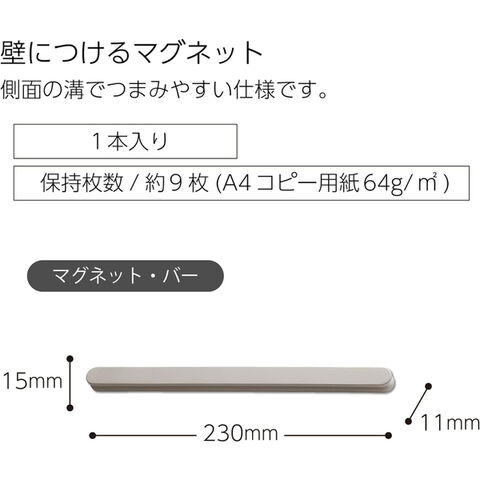 コクヨ 壁につけるマグネット バー グレージュ LSW-MAG200LS