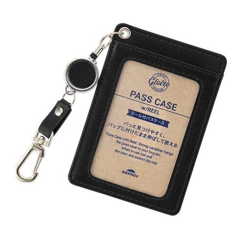 【送料無料】リール付パスケース ブラック GLOIRE グロワール 合皮製 定期入れ 2ポケット ICカード ビジネス シンプル レイメイ藤井 - メール便発送