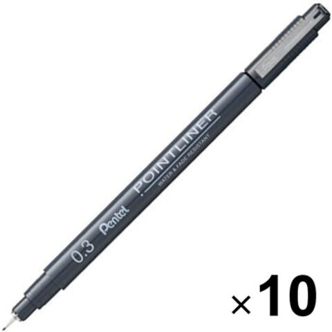 【送料無料】【10本セット】 水性顔料マーカー POINTLINER ポイントライナー 0.3mm 黒インキ 耐水 イラスト アート ぺんてる - メール便発送