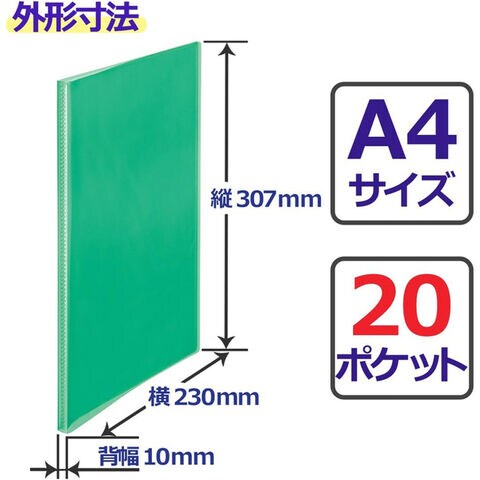 【1000円以上お買い上げで送料無料♪】プラス クリアファイル シンプルクリアーファイル A4 20ポケット グリーン FC-220SC - メール便発送