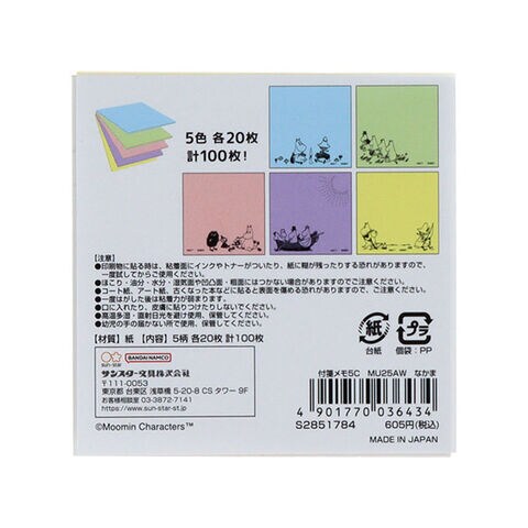 【1000円以上お買い上げで送料無料♪】ムーミン 付箋メモ なかま 5柄×各20枚 好きな柄から使える Hyvaa Matkaa! 旅 北欧 かわいい サンスター文具 - メール便発送