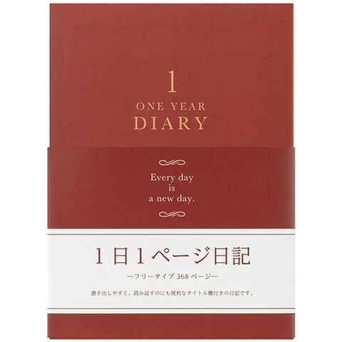日記 1日1ページ 洋風 赤 B6 日付フリー テーマ別インデックス ケース付 記録 MD用紙 ダイアリー シンプル ミドリ