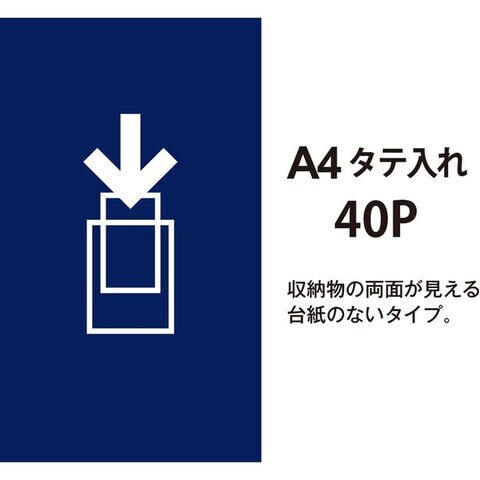 プラス クリアーファイル 溶着式 タテ入れ A4-S 40ポケット FC-124EL ネイビー