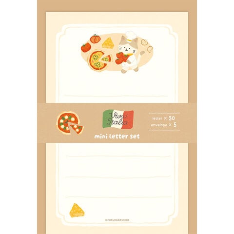 【1000円以上お買い上げで送料無料♪】ミニレターセット Viva! Italia イタリア ピザにゃんこ 美濃和紙 便箋 クラフト封筒 ネコ 猫 かわいい 日本製 古川紙工 - メール便発送