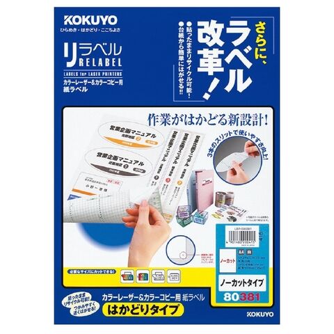 コクヨ カラーLBP&コピー用紙ラベル「リラベル」はかどり1面20枚