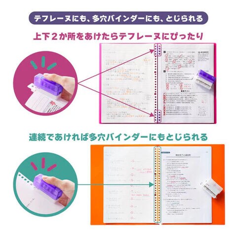 テフレーヌ 4穴ミニパンチ 白 A4/B5/A5対応 穴あけ リングノート プリント ルーズリーフ 学習効率アップ キングジム