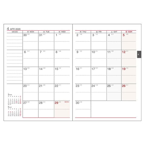 ベーシックで機能的なビジネスダイアリー。罫線幅や文字の配置など細部まで使いやすさにこだわった仕事を機能面でサポートする手帳です。