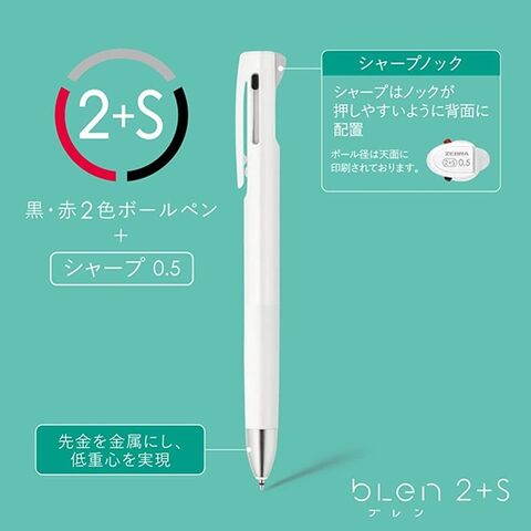 2色のエマルジョンインクとシャープペンを1本にした多機能タイプ「ブレン2+S」です。
