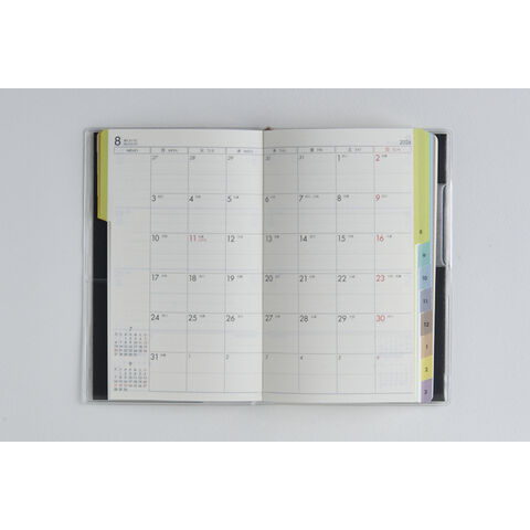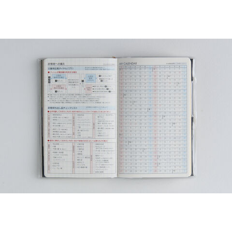 【月間予定表】横罫メモとグリッドメモページが付いているので、月間ページに書き足りなくても安心!巻末には2種類のメモページが付いています。 【週間予定表】左ページには4日分のスケジュール欄、右ページには3日分のスケジュール欄とメモスペースを掲載したセパレート式。1日分の記入スペースが広いので、ちょっとした日記としてもご使用いただけます。