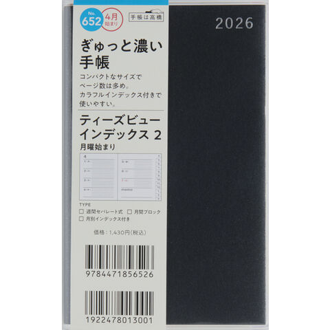 【送料無料】高橋書店 2026年 手帳・ダイアリー 3月始まり 【652】T’beauインデックス2 手帳判 見開き1週間 ブラック - メール便発送