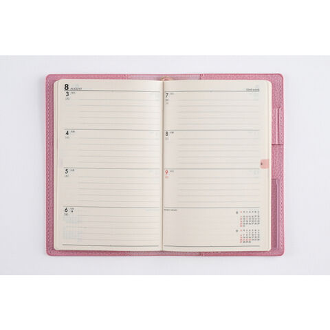 カバーは、高級感がある皮革調。カバーのステッチ糸も、カバー色に合わせて選び抜いています。本文は、目にやさしいクリーム色の用紙を使用しています。細部にまでこだわり抜いた手帳は、毎日使うのがきっと楽しくなるはずです。
