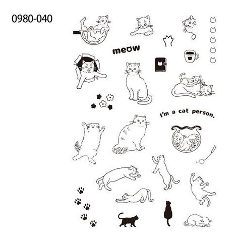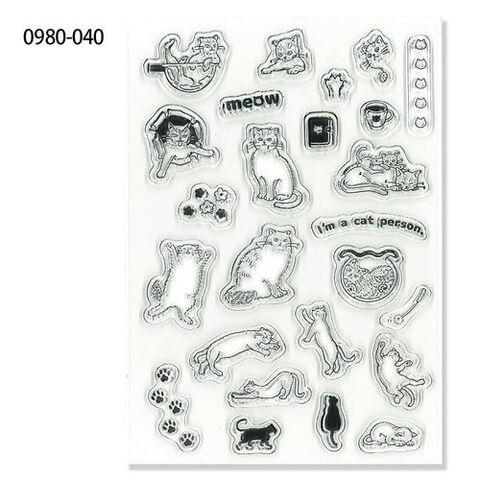 猫好きにはたまらない、いろんな仕草の猫がかわいいクリアスタンプシートです。