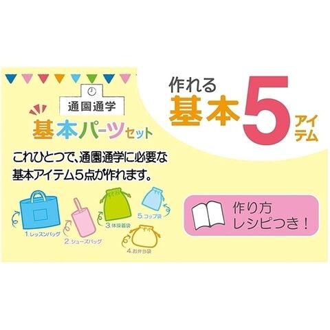 これひとつで通園通学に必要な基本アイテム5点(レッスンバッグ、シューズケース、体操着袋、お弁当袋、コップ袋)が作れます。