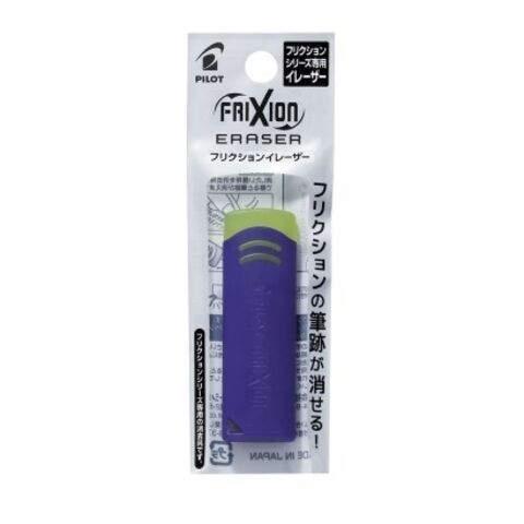 フリクションイレーザーは、書いた字が消せる「フリクションシリーズ」すべてに対応する専用の消しゴムです。こすると摩擦熱で記入箇所を消すことができます。楕円形の断面形状で手にフィットし、細かい部分と広い面の使い分けが可能です。ペン先に付いているものでは使いにくいという方にぴったりです。フリクションシリーズをお使いの方は「フリクションイレーザー」がひとつあるととても便利!