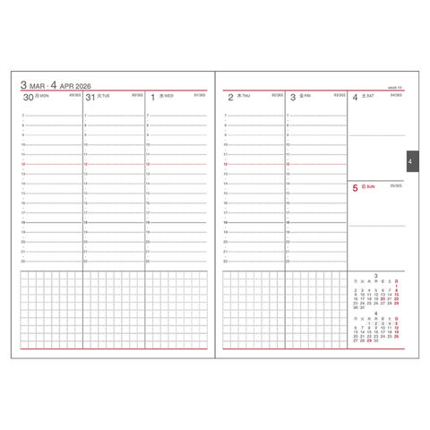 ベーシックで機能的なビジネスダイアリー。罫線幅や文字の配置など細部まで使いやすさにこだわった仕事を機能面でサポートする手帳です。