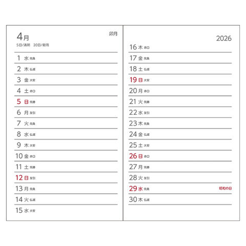 ・Appointシリーズは、仕事をする人のことを考えて作ったビジネスダイアリーです。使いやすさを追求し、罫線幅の種類、書体や文字の配置など細部にわたりこだわって制作しています。ビジネスシーンで使いやすいベーシックなデザインでお求めやすい価格も魅力です。・オリジナル手帳用紙へのこだわり:ダイゴーのオリジナル手帳用紙は、安定した強度と滑らかな筆記特性・万年筆やボールペンのにじみが少ないといった特徴があります。毎年、製紙メーカーと改良を重ね、手帳用紙を抄造(紙の原料をすいて紙を製造すること)しています。毎日書き込むものだからこそ、使いやすさにこだわって厳しい項目をクリアした紙だけを使用しています。・180度フラットに開く『糸かがり製本』:書きやすい手帳の条件は、180度フラットに開くことです。それを実現するためにダイゴーでは糸でしっかりと綴じられた『糸かがり製本』が最も相応しい製本方法だと判断し、多くの製品で採用しています。だから、ダイゴーの手帳はきれいに開きます。
