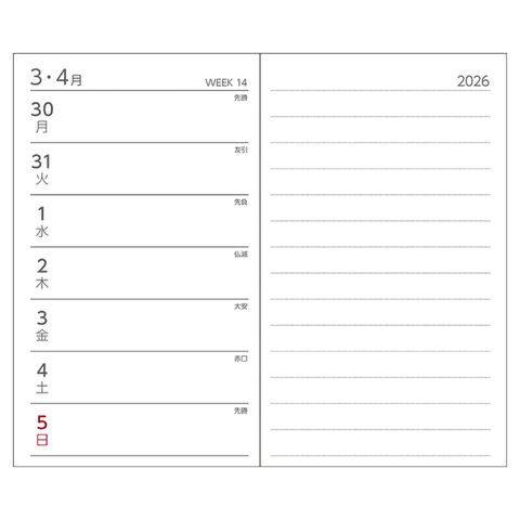 【レイアウト】1週間+横罫 ウィークリー 週間 レフト