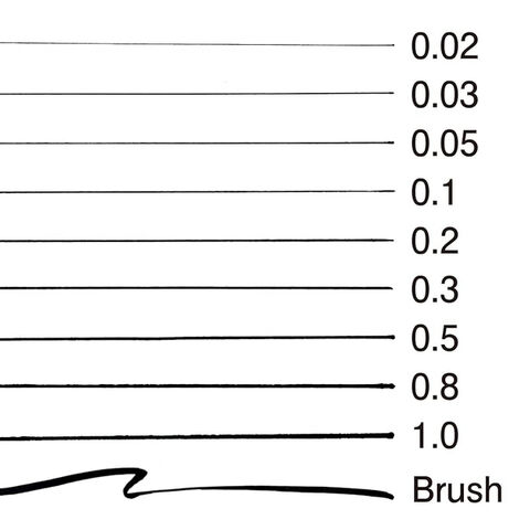 0.3~1.0mmは加筆や太線を描く時に。 またBrushは影塗り・ベタ塗り・筆ラインを描くのに最適です。