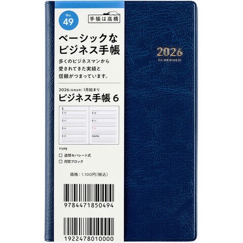 高橋書店 2026年 手帳・ダイアリー (49) ビジネス手帳6 手帳判 藍 見開き1週間