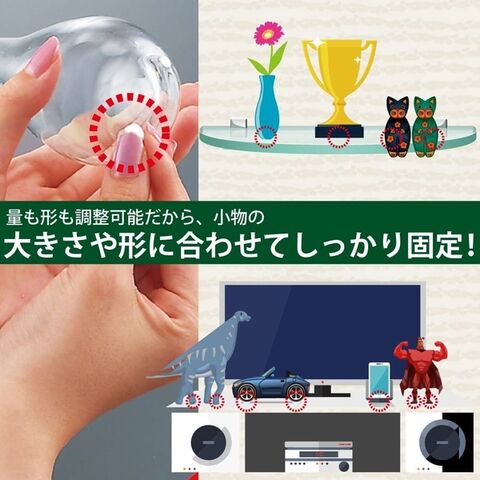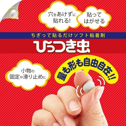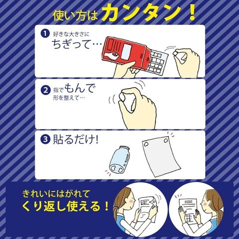 ●くり返し貼ってきれいにはがせる粘着剤です。メモの仮止めや、小物の固定などに大変便利。使用量も調節できます。●掲示物を傷付けずしっかり固定できます。穴を防ぐパテ代わりにもなり、滑り止めや転倒防止にも万全の対応。画びょうで壁に穴があく必要はありません。●材質/合成ゴム●外寸法は1山当たりのサイズです。●1山あたりのサイズは変形する場合があります。