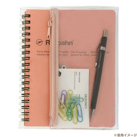 ロルバーン ポケット付きメモ ストレージカバー L ライトピンク リング ファスナー 小物収納 日本製 デルフォニックス