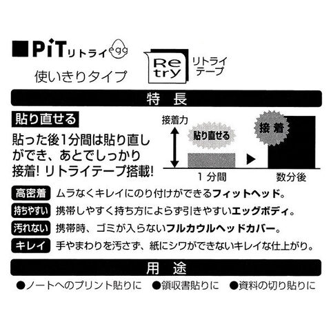 【送料無料】トンボ鉛筆 テープのり PiT ピット リトライエッグ 使い切りタイプ 5個セット - メール便発送のレビュー