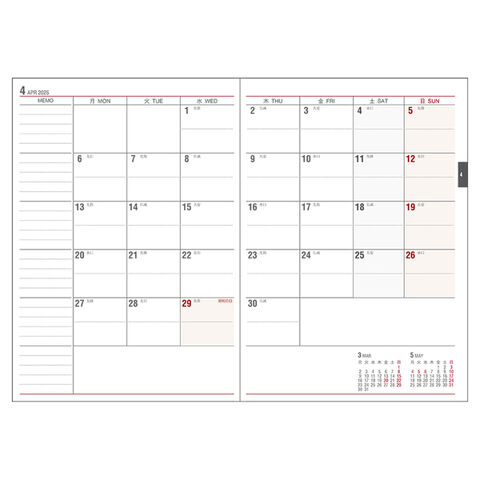 ●Appointシリーズは、仕事をする人のことを考えて作ったビジネスダイアリーです。使いやすさを追求し、罫線幅の種類、書体や文字の配置など細部にわたりこだわって制作しています。ビジネスシーンで使いやすいベーシックなデザインでお求めやすい価格も魅力です。●オリジナル手帳用紙へのこだわり:ダイゴーのオリジナル手帳用紙は、安定した強度と滑らかな筆記特性・万年筆やボールペンのにじみが少ないといった特徴があります。毎年、製紙メーカーと改良を重ね、手帳用紙を抄造(紙の原料をすいて紙を製造すること)しています。毎日書き込むものだからこそ、使いやすさにこだわって厳しい項目をクリアした紙だけを使用しています。●180度フラットに開く『糸かがり製本』:書きやすい手帳の条件は、180度フラットに開くことです。それを実現するためにダイゴーでは糸でしっかりと綴じられた『糸かがり製本』が最も相応しい製本方法だと判断し、多くの製品で採用しています。だから、ダイゴーの手帳はきれいに開きます。