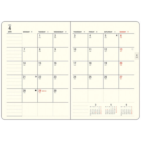 ●色:グレー●規格サイズ:B6●表紙素材:PVC●ページ数:176●始まり曜日:月曜日●始まり月:3●主レイアウト:1週間+方眼●レイアウト1:ウィークリー●レイアウト2:週間●レイアウト3:レフト●六曜の有無:有●付録:カレンダー・年間スケジュール・バースデー、記念日リスト・ID、パスワードリスト・サイクルカレンダー・換算表・年齢早見表・困ったときの連絡先リスト・パーソナルノート●掲載期間(月間ページ):2025年3月~2026年3月●掲載期間(週間ページ):2025年3月~2026年3月●カタログ名:Appoint MILL 2025-26 DIARY CATALOG●カタログ掲載
