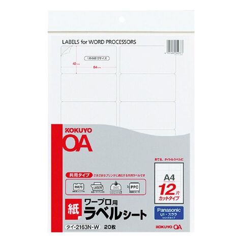 コクヨ ワープロ用紙ラベルPanasonic A4 20枚 [タイ-2163N-W]