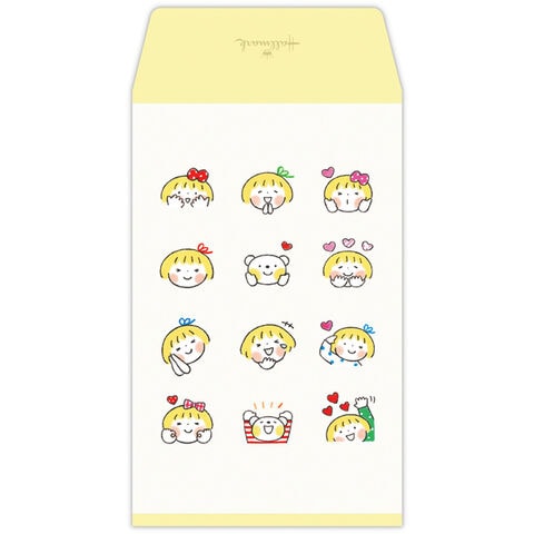 【1000円以上お買い上げで送料無料♪】仲良しともだち メモ付きポチ袋 いろんな顔 各3枚入 三つ折り 多目的 お年玉 はるちゃんとふうくん LINEスタンプ - メール便発送