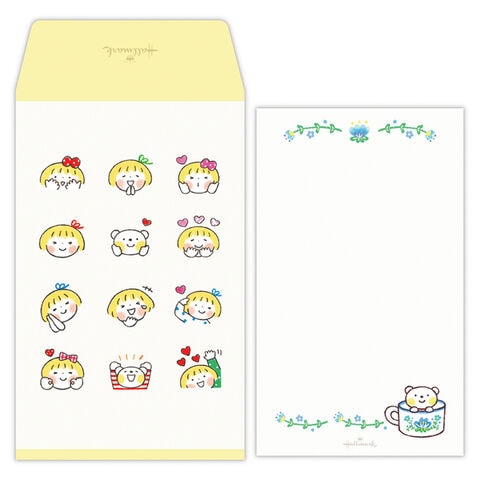 仲良しともだち メモ付きポチ袋 いろんな顔 各3枚入 三つ折り 多目的 お年玉 はるちゃんとふうくん LINEスタンプ