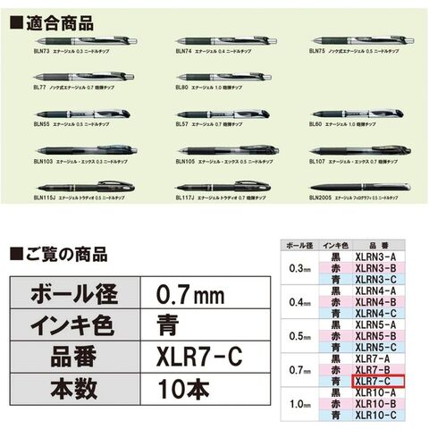 【1000円以上お買い上げで送料無料♪】まとめ買い ぺんてる ボールペン替芯 エナージェル 0.7mm XLR7 青 10個セット - メール便発送