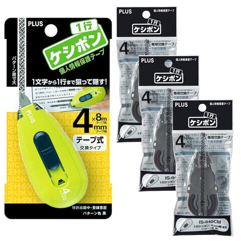 プラス 個人情報保護テープ 1行ケシポン グリーン 本体+交換テープ3個セット