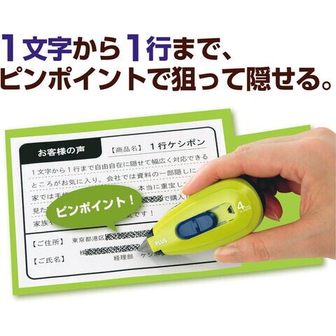 1行だけ文字を隠したい!という方へ!テープ式なので1文字から1行まで狙って隠せるタイプです。