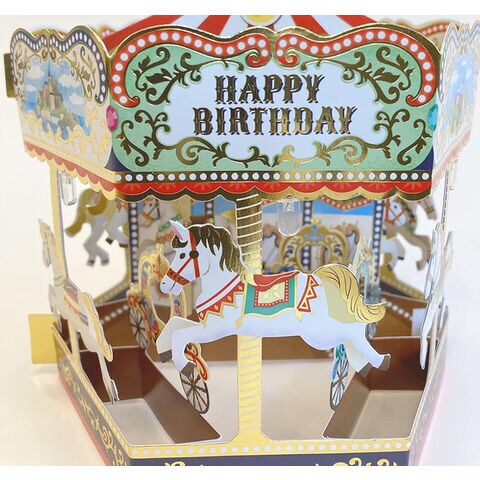 グリーティングカード 誕生日祝い ライト&メロディー メリーゴーラウンド 封筒付 立体 郵送可 電池交換可 サンリオ