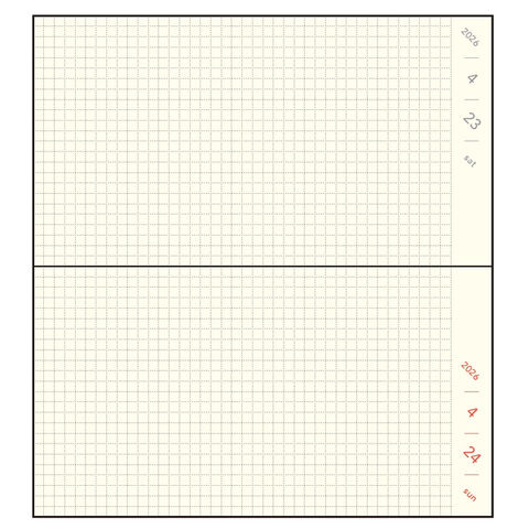 日付と2.5mm方眼のみのシンプルなレイアウト。日付がななめに入っているので、タテヨコどちらでもつかえます。毎日のtodoやログなどを簡単に記入できるレイアウトです。