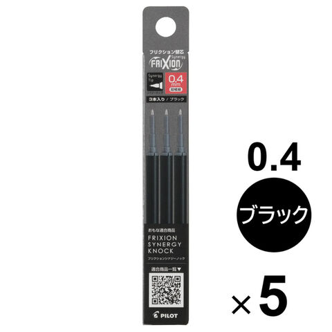 【5個セット】 フリクション シナジーノック用替芯 0.4mm 超極細 同色3本入 ブラック こすると消える ゲルインキボールペン