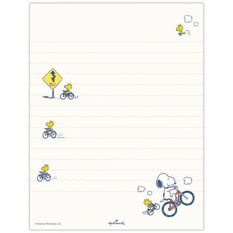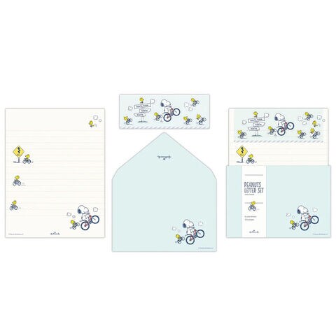 スヌーピー レターセット Let's have a Happy Journey ブルー 自転車 便箋 封筒 シール 手紙 かわいい ホールマーク
