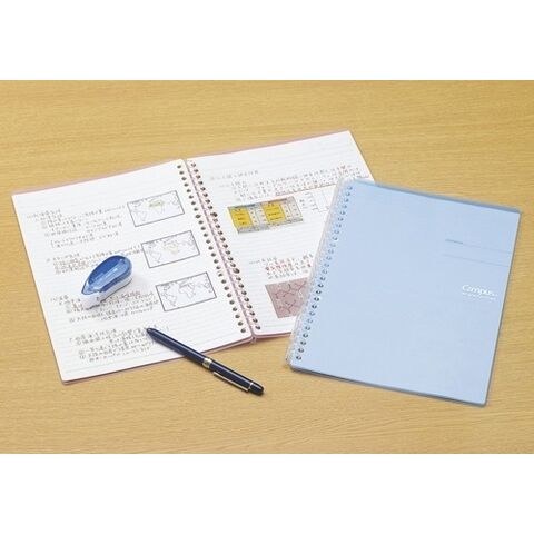 ●平らに開くので見開き使用でも端まで書きやすくなっています。
