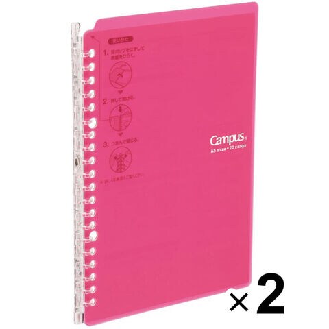 2冊まとめ買い コクヨ キャンパスバインダー スマートリング B5縦 26穴 25枚 ビビッドピンク