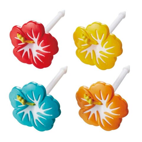ハイビスカス ピック 4本入 ハワイアン 南国 花 デコ 弁当 遠足 ピクニック パーティ かわいい トルネ