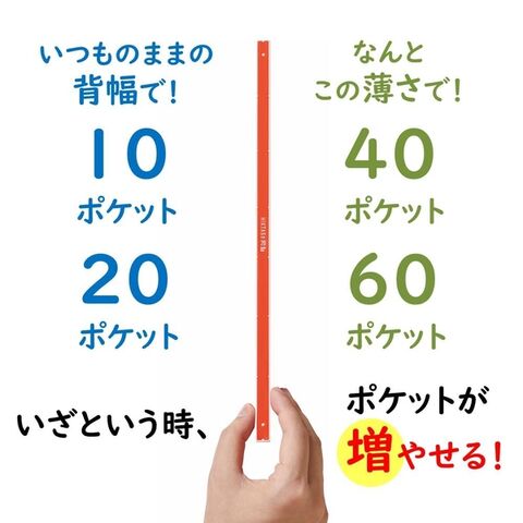 スリムな背幅で、いざという時に、ポケットが増やせる!