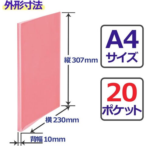 プラス クリアファイル シンプルクリアーファイル A4 20ポケット ピンク FC-220SC