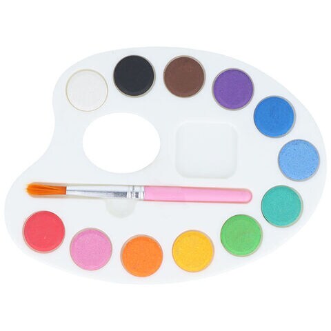 パレットには、基本の12色の絵具と絵筆が付いているので、届いてすぐに遊べます。
