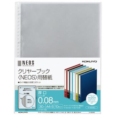 【1000円以上お買い上げで送料無料♪】クリヤーブック クリアポケット NEOS用替紙 A4縦 30穴 厚口 10枚 コクヨ - メール便発送