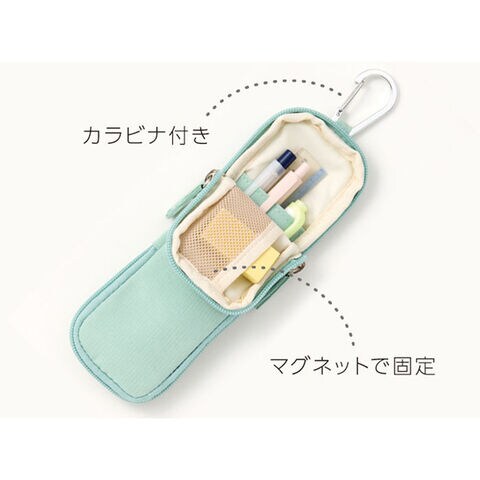 【送料無料】スリーナペンケース グリーン 2Way 半開/全開 省スペース マグネット固定 カラビナ付 携帯 ファスナー レイメイ藤井 - メール便発送