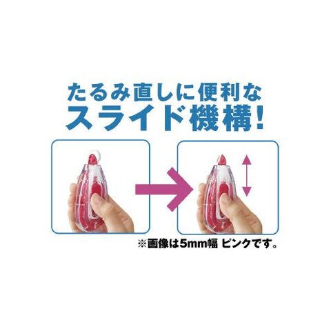 「ホワイパースライド」の交換テープは、ポップカラー(12m巻き/10m巻き)の本体および、「裏から見えない修正テープ」にもご使用いただけます。